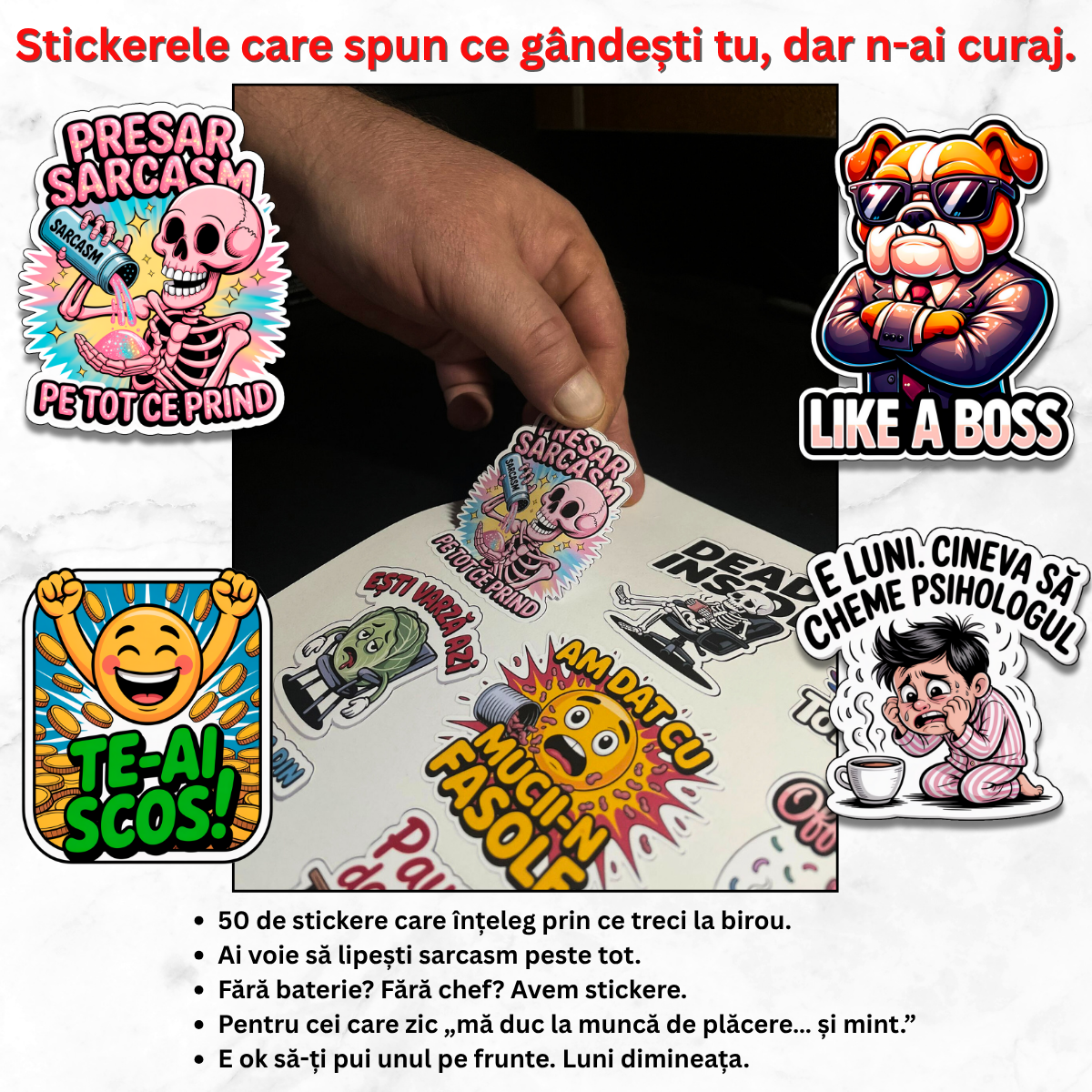 Set 50 Stickere Decorative Haioase – Funny, Sarcastice și Motivaționale – Waterproof 4–6 cm – Laptop, Telefon, Birou